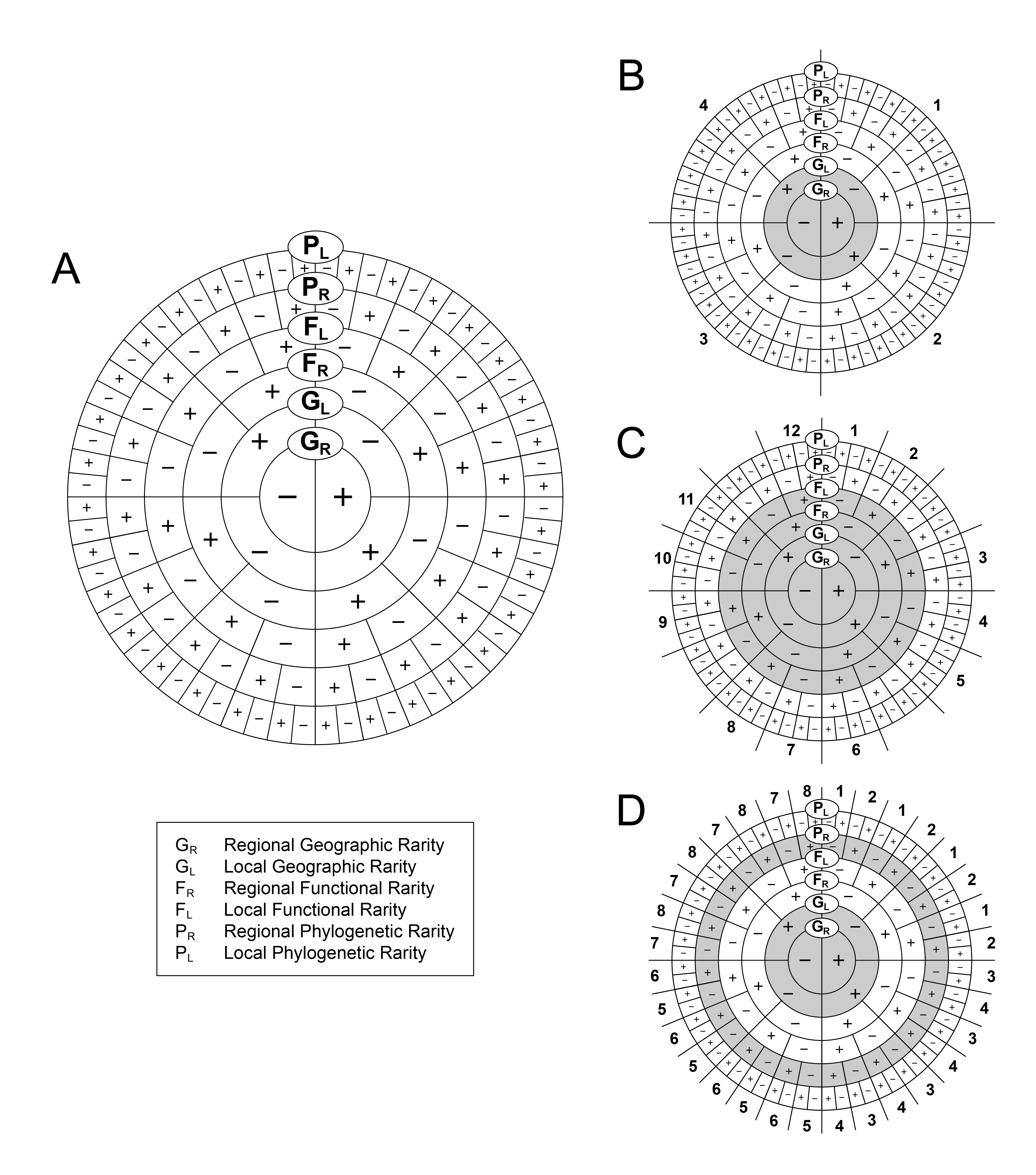 We introduce a general model of discretized rarity (GDR) that incorporates geographic, functional, and phylogenetic dimensions at regional and local scales. This model can be simplified based on research question, management goal, spatial scale, and data availability to create workable definitions and link existing approaches.